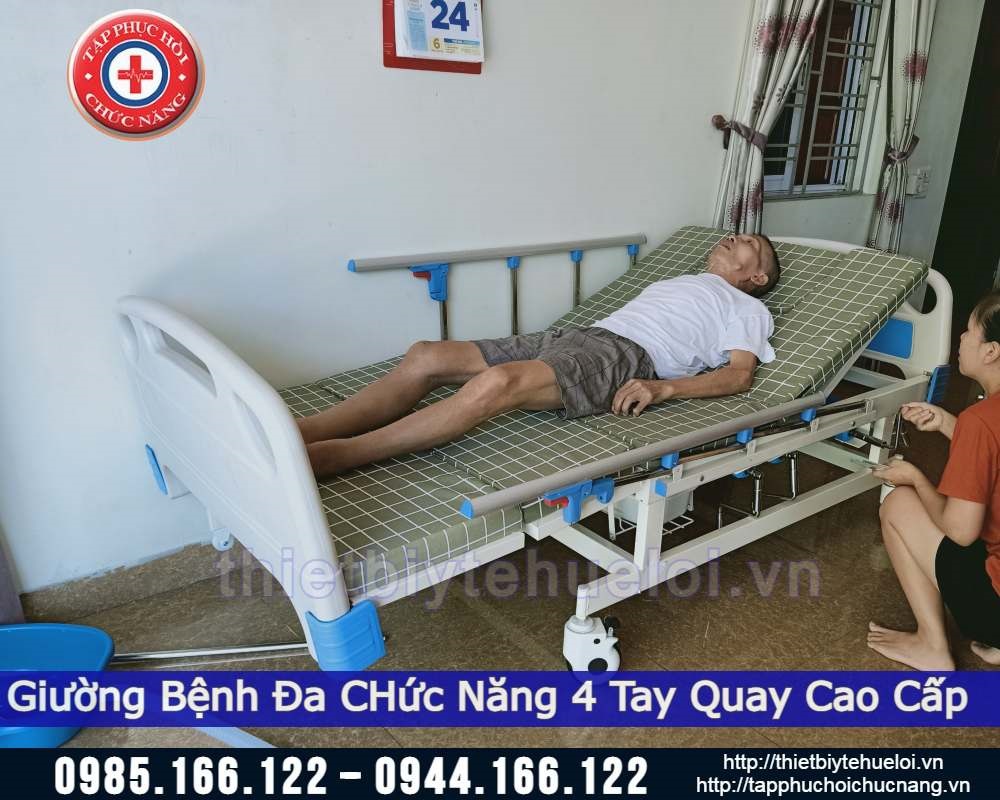 Giường bệnh viện tại nhà HL3 được nâng cấp lên 4 tay quay nên ngoài việc điều chỉnh đầu và cuối giường lên cao – xuống thấp như cũ thì nay còn có thể điều chỉnh 2 nửa giường nghiêng trái hoặc phải