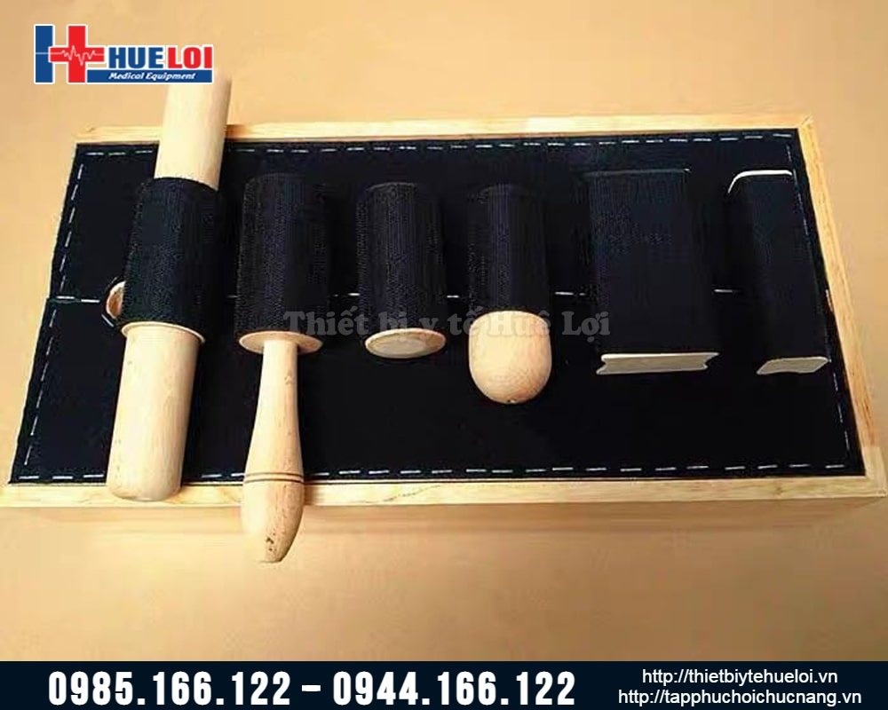 Hộp gỗ tập phục hồi chức năng cổ tay dùng cho những người yếu liệt bàn tay hoặc co cứng khớp cổ tay. Sản phẩm bao gồm: 1 hộp gỗ chính và 7 miếng gỗ phụ với những hình dạng khác nhau (hình hộp chữ nhật, hình lăng trụ tam giác, hình cán bột…), dùng thiết kế băng gai dính bao bên ngoài các miếng gỗ để tạo thành trở lực, từ đó giúp tập luyện cơ cổ tay và luyện độ linh hoạt cho khớp cổ tay