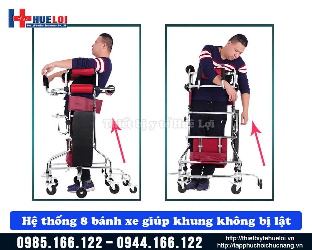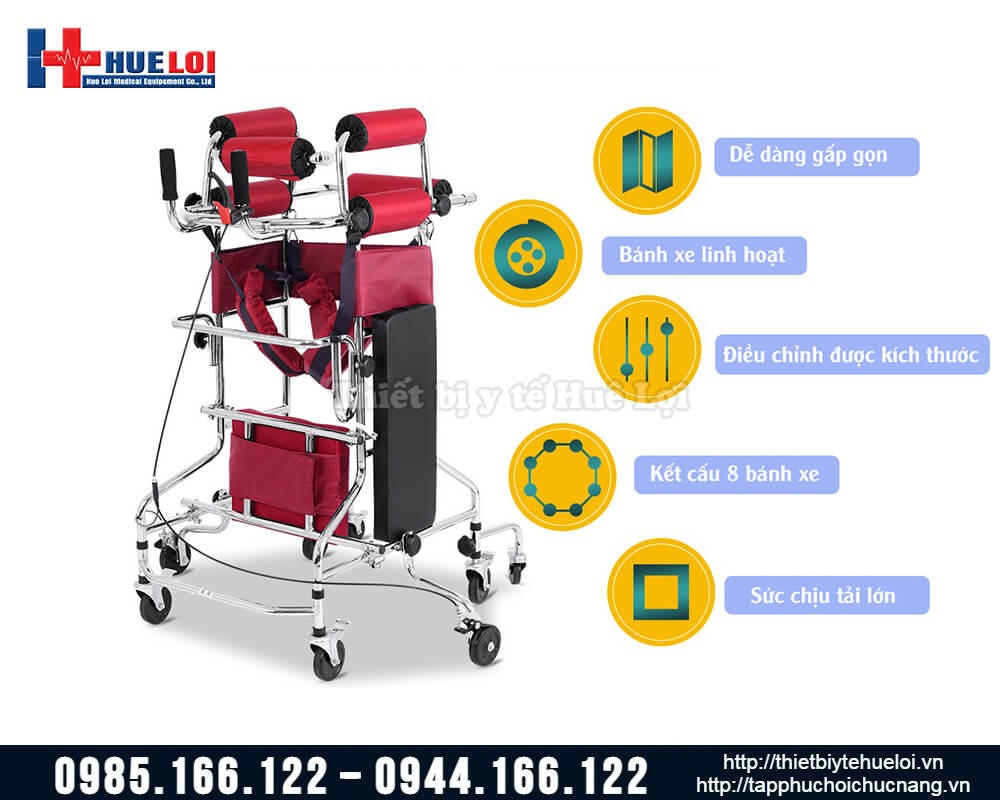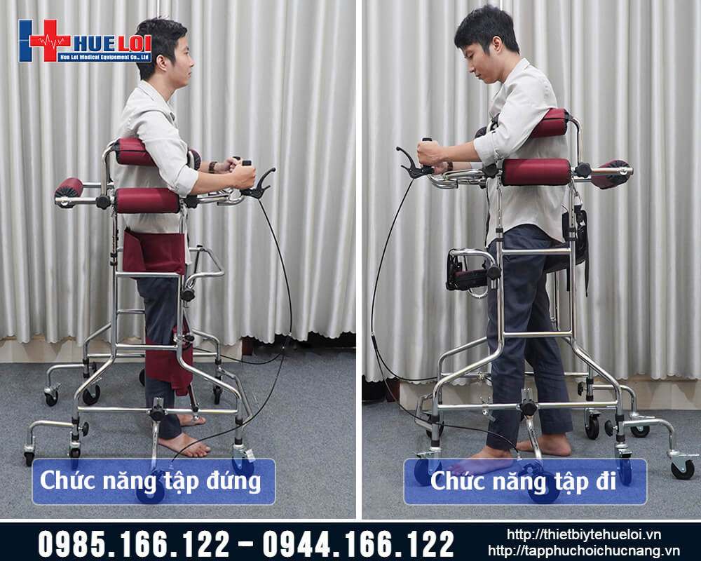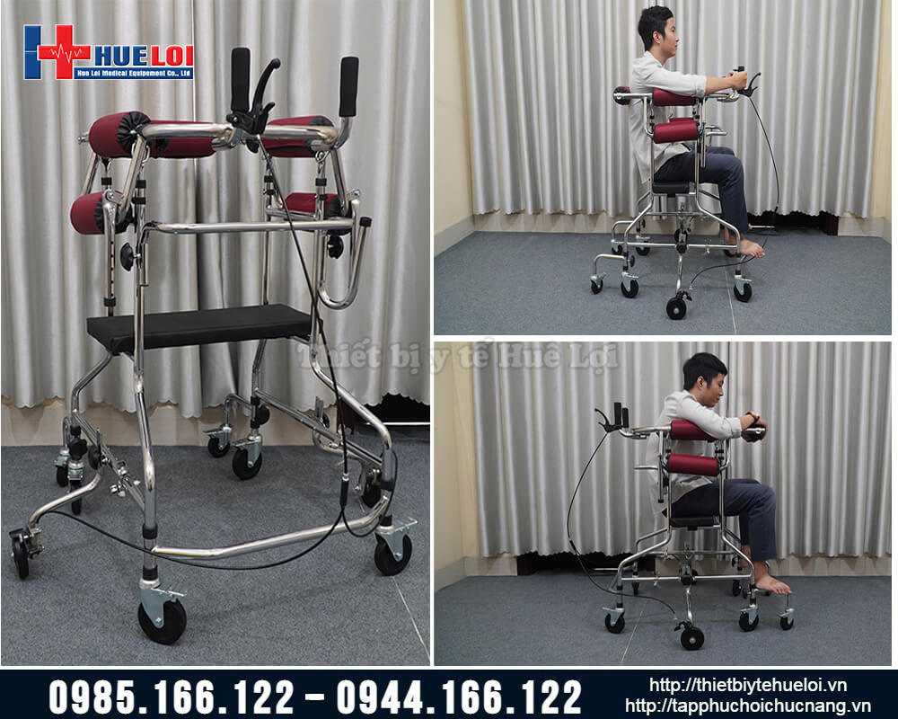 Khung tập đứng và tập đi phục hồi chức năng được sử dụng cho người bệnh sau tai biến, yếu liệt. Khung được tích hợp 3 tính năng trong 1 sản phẩm bao gồm: tập đứng, tập đi và khung cũng có chức năng như một chiếc xe lăn. Khung tập đứng và tập đi đa năng là giải pháp phù hợp, an toàn, hỗ trợ đắc lực cho việc tập phục hồi chức năng sau tai biến.