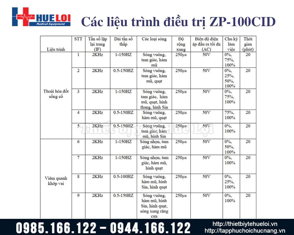 Máy điện xung điều trị ZP-100 CID: thông số kỹ thuật