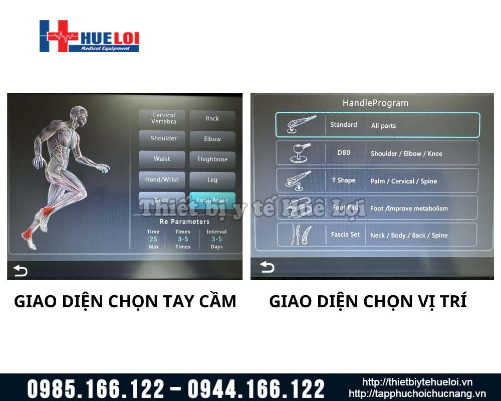 1. Tay cầm D80mm: Bao gồm 2 tay cầm, có thể sử dụng độc lập không cần qua tấm trở, thích hợp với các vùng khuỷu tay, vai, đầu gối…